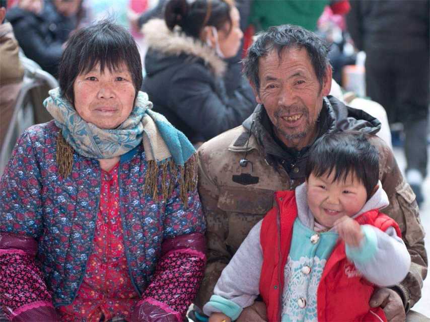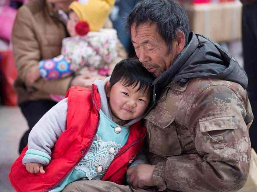 圖二:小孫女依偎在爺爺懷里。看得出小孫女跟爺爺奶奶很親。