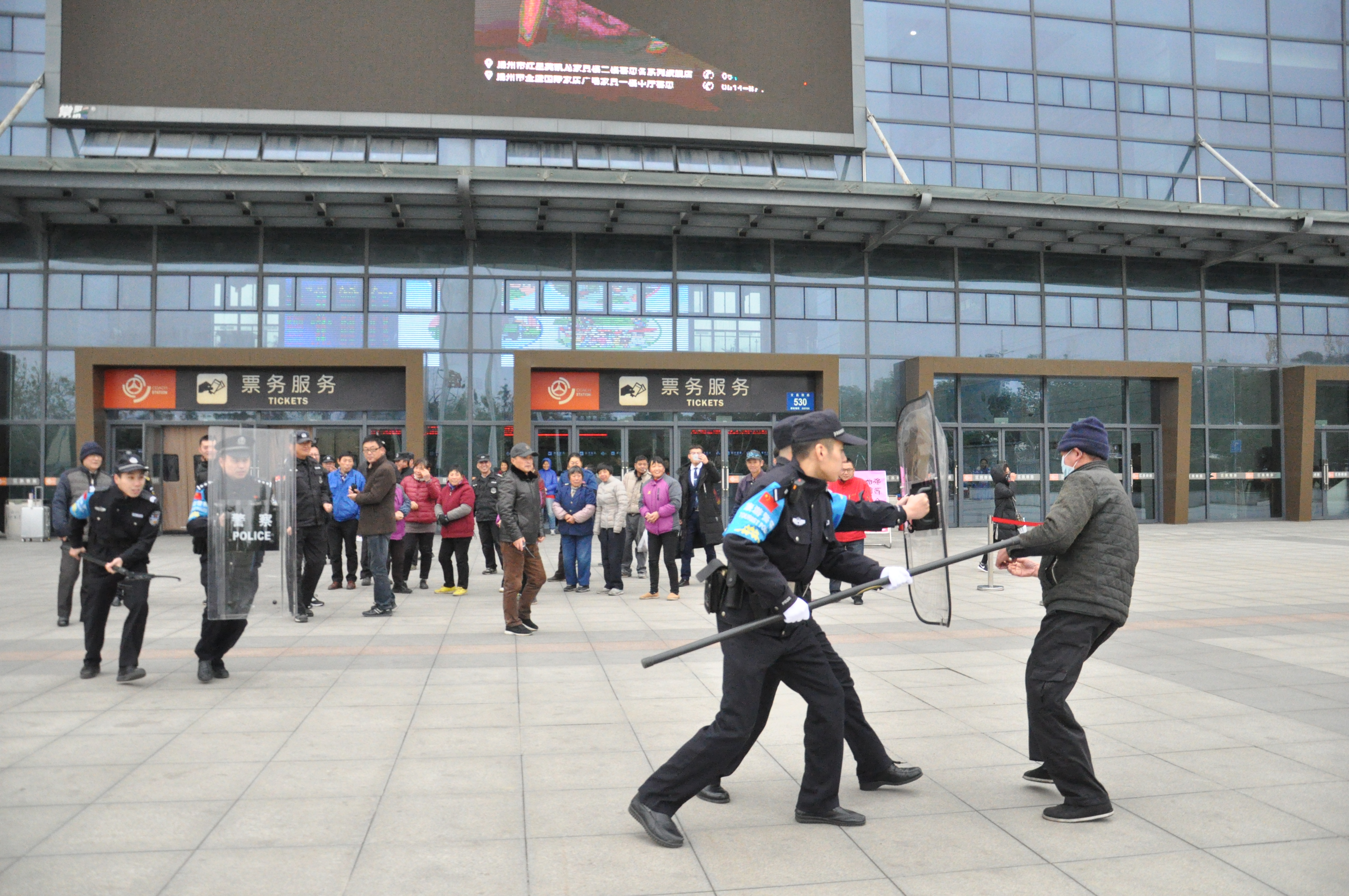 為有效防范公共場所可能發(fā)生的暴力恐怖事件,加強(qiáng)車站工作人員安全防范意識(shí),提高對(duì)突發(fā)事件的應(yīng)急處置能力,12月7日下午,揚(yáng)州站聯(lián)合揚(yáng)州市公安局公交治安分局汽車總站派出所,在站前廣場開展年度反恐防暴演練。
