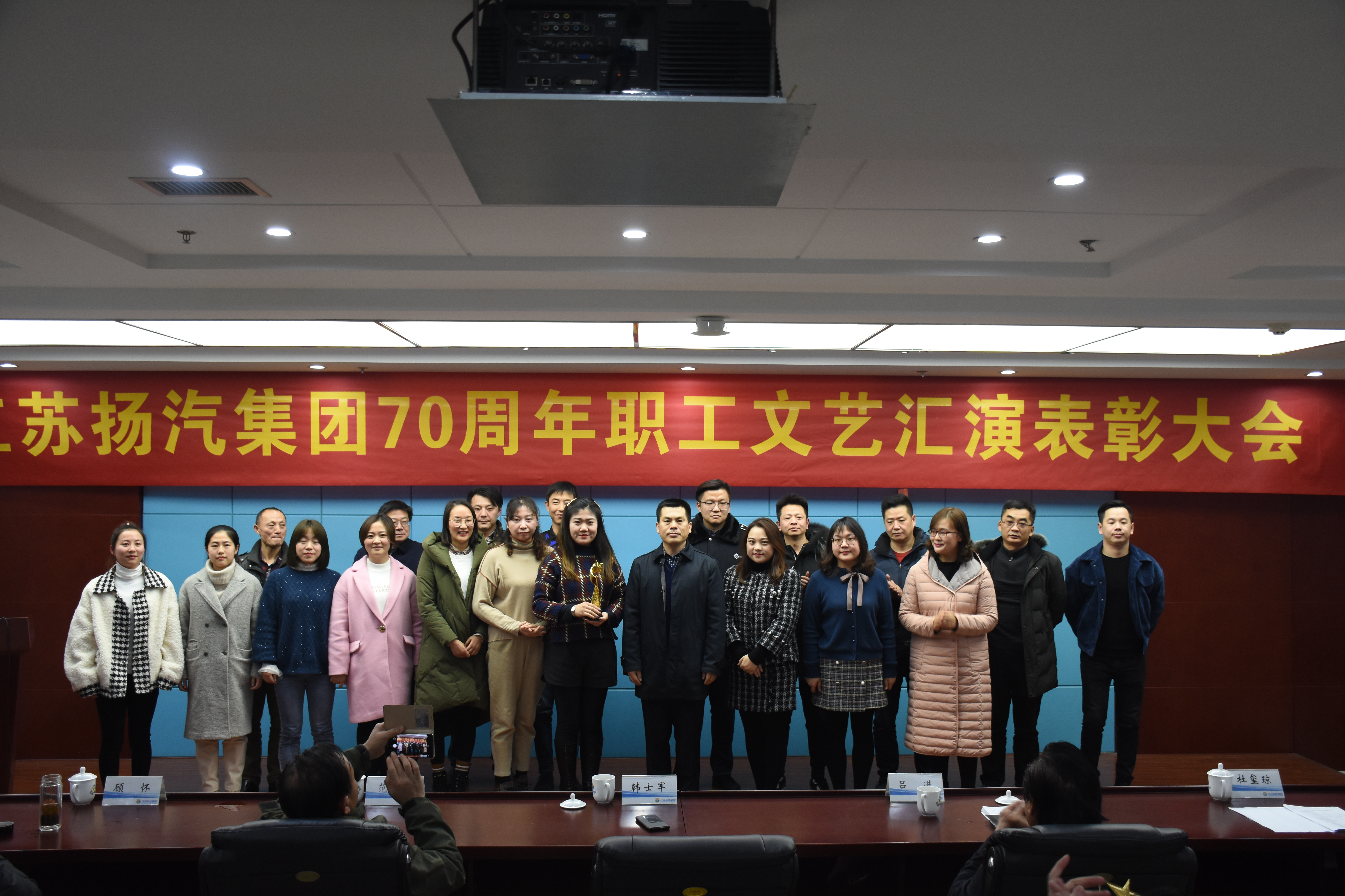 1月3日下午,集團(tuán)公司在教培中心三樓會(huì)議室舉辦七十周年職工文藝匯演表彰大會(huì),七十大慶演職人員再一次齊聚一堂,重溫那激動(dòng)人心的時(shí)刻。市總工會(huì)副主席韓士軍,市建設(shè)工會(huì)、工作委員會(huì)主任范華,交通產(chǎn)業(yè)集團(tuán)辦公室、黨委辦主任呂進(jìn),揚(yáng)汽集團(tuán)黨委副書記、紀(jì)委書記、工會(huì)主席顧懷出席活動(dòng)。