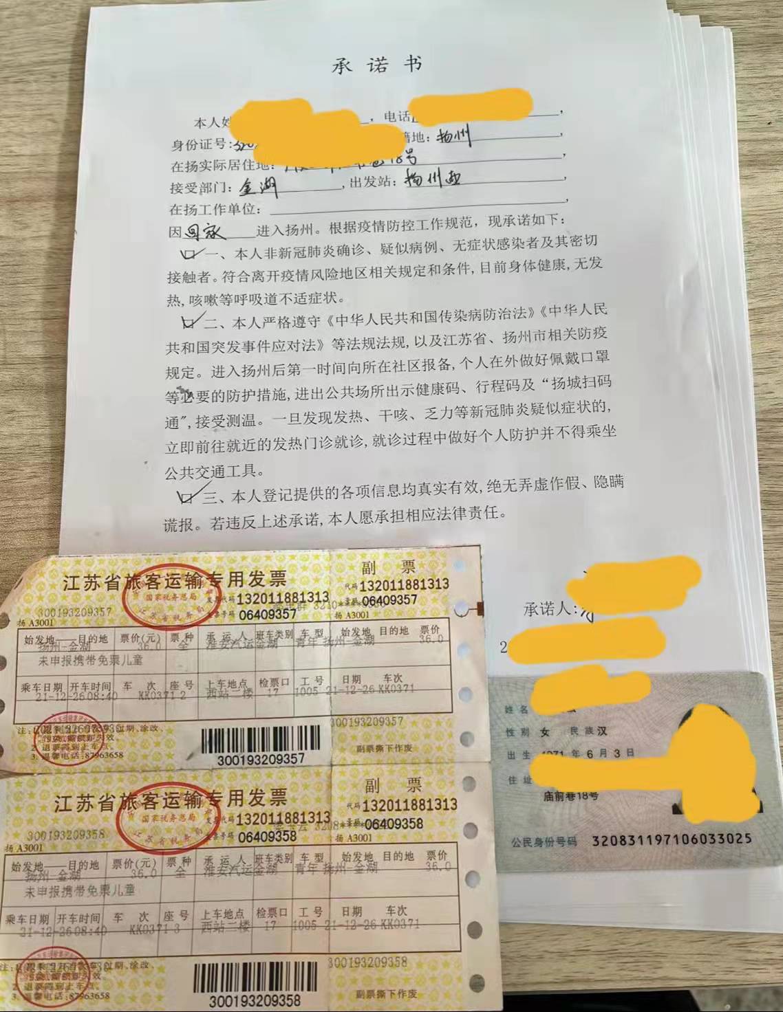 由于情況特殊,但也不能違反疫情防控要求啊!這可怎么辦呢?黃建軍從這名旅客提供的個人物件中,發(fā)現(xiàn)了幾張往返車票,通過車票拼湊出了她十四天內(nèi)的行程,僅往返于揚州和金湖兩地,并未到過疫情重點區(qū)域。