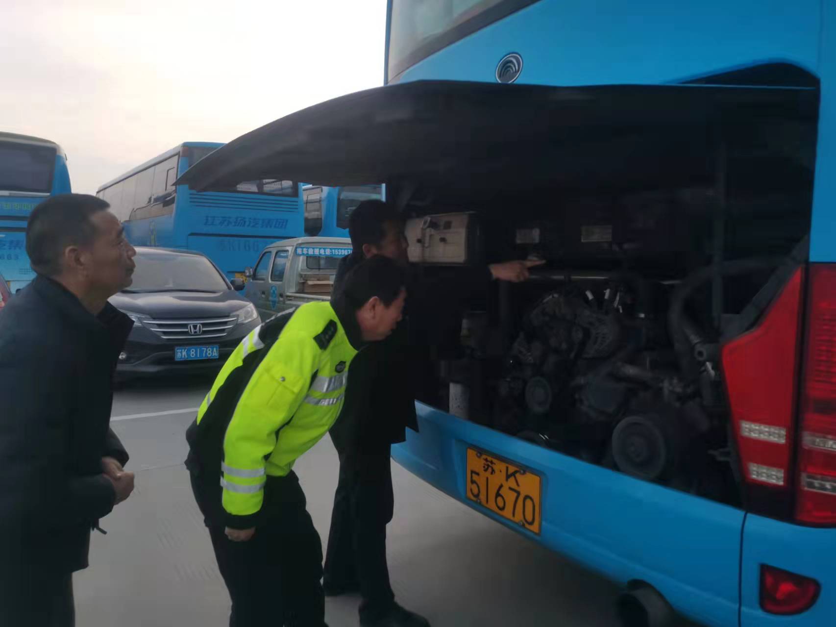 從1月13日起,集團安全機務部結合公安交警部門相關工作要求,組織開展春運車輛臨時檢驗工作,確保車輛機務技術狀態(tài)完好,全力做好2022年春運安全運輸保障工作。揚州市公安交警隊分管轄區(qū)鮑小勇、安全機務部相關負責人在現(xiàn)場指導春運車輛臨檢工作。