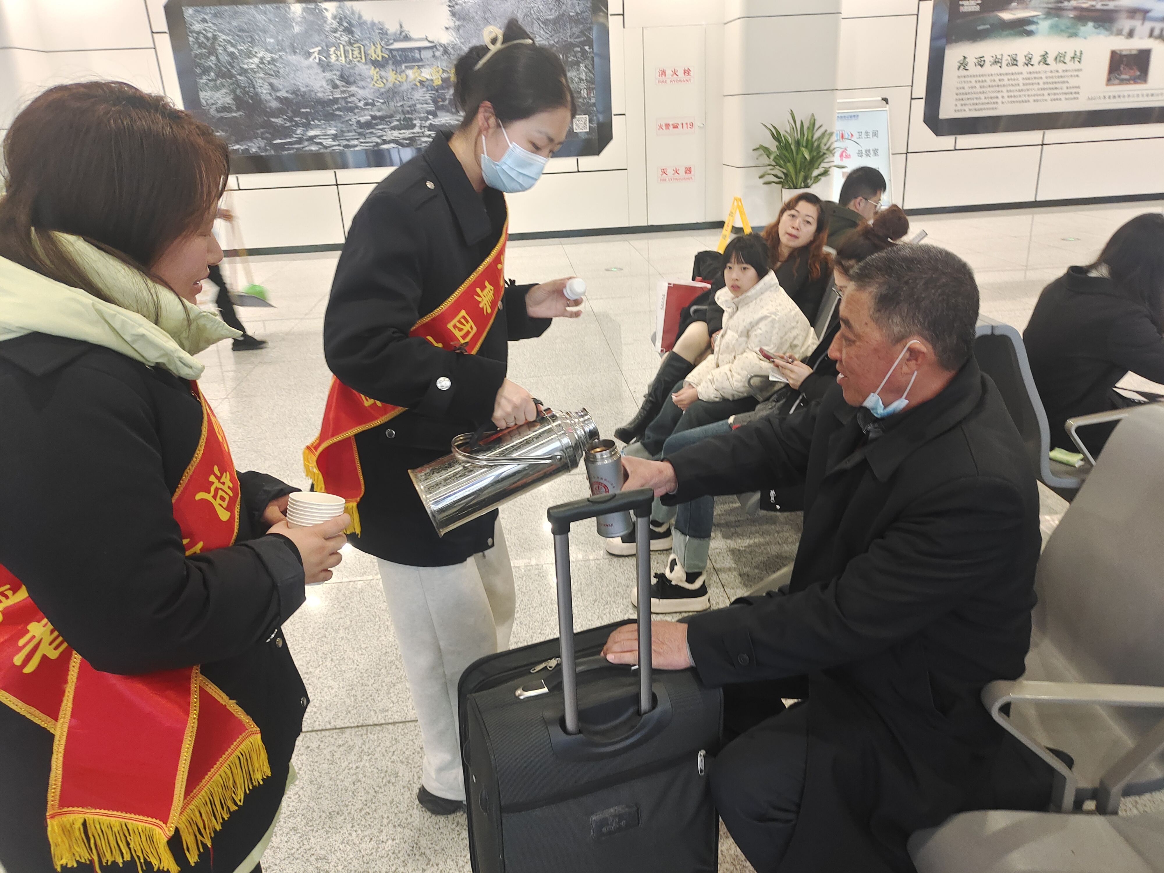 車站將愛心驛站臨時(shí)調(diào)整為旅客滯留休息區(qū),為旅客們提供了溫暖舒適的休息環(huán)境,工作人員積極與旅客溝通,為大家送上暖心的茶水,及時(shí)告知班次信息,解答旅客的疑問,努力緩解旅客們的焦慮情緒。同時(shí),工作人員有序地組織旅客退票,耐心地解答旅客疑問,提供準(zhǔn)確的信息和合理的建議。他們的專業(yè)和熱情,贏得了旅客們的一致稱贊。